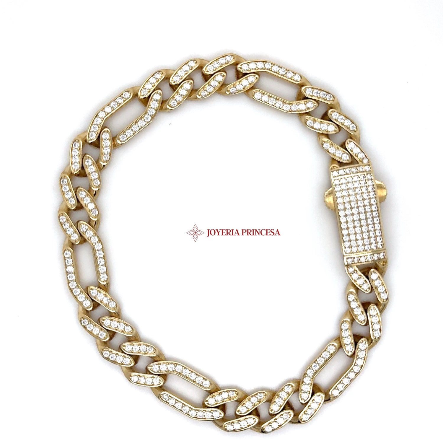 14K Gold Wide Herringbone Bracelet with Pave Clasp