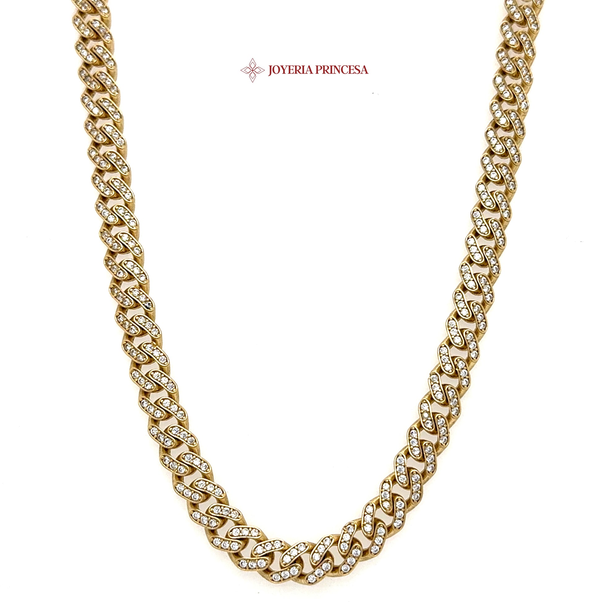 This stunning Monaco Cuban Chain features Zirconia links that enhance its brilliance, creating an elegant and eye-catching statement piece for any occasion. - Diamond-cut embellishments - Luxurious gold finish - Secure box clasp