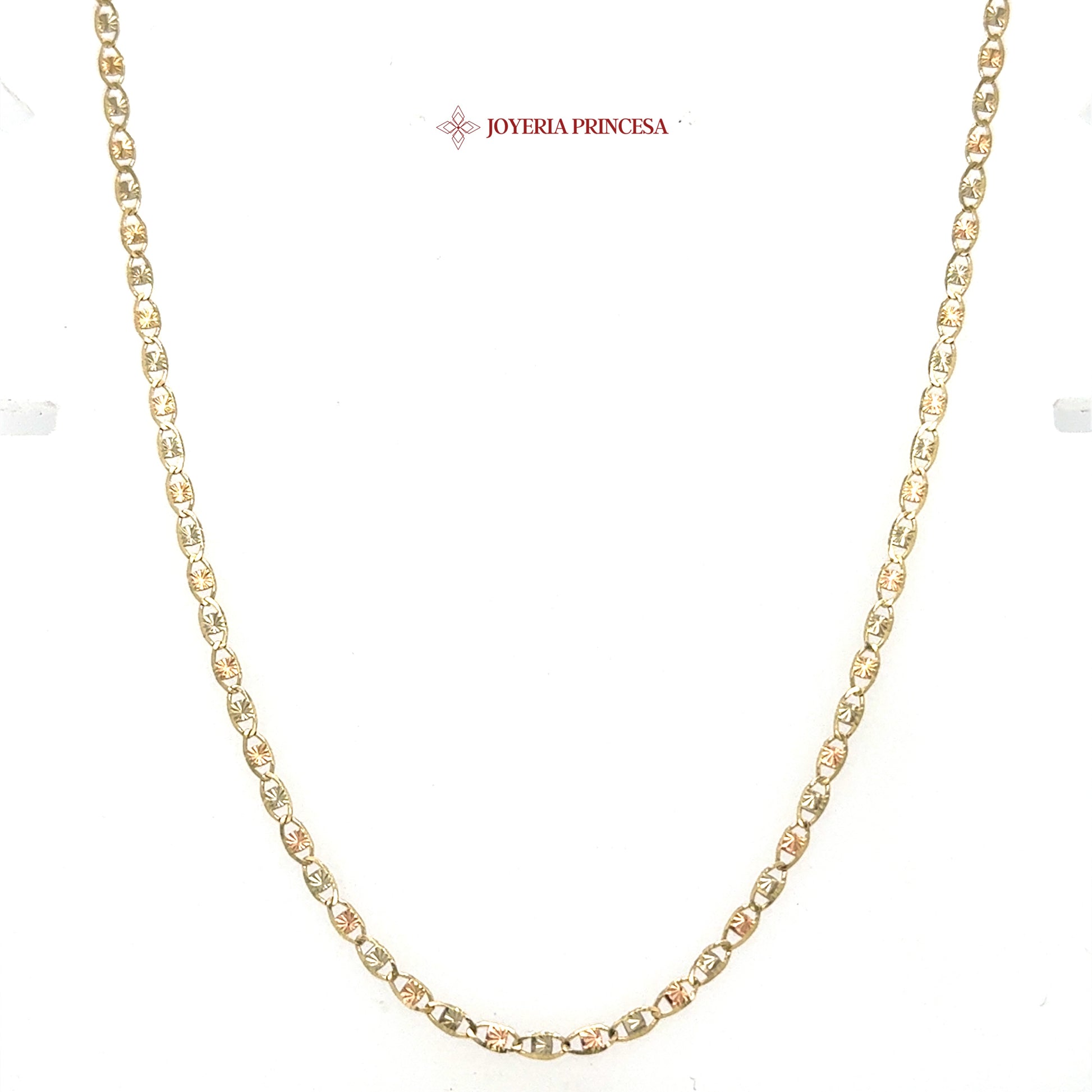 This elegant 10K two-tone Mariner Valentino chain is a timeless accessory designed for everyday wear or special occasions.