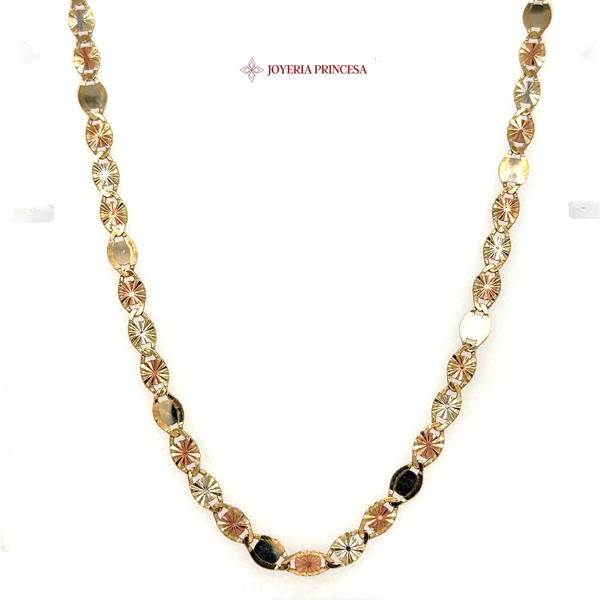 This exquisite two-tone necklace features alternating polished links with radiant starburst designs, showcasing elegance and sophistication in every detail.