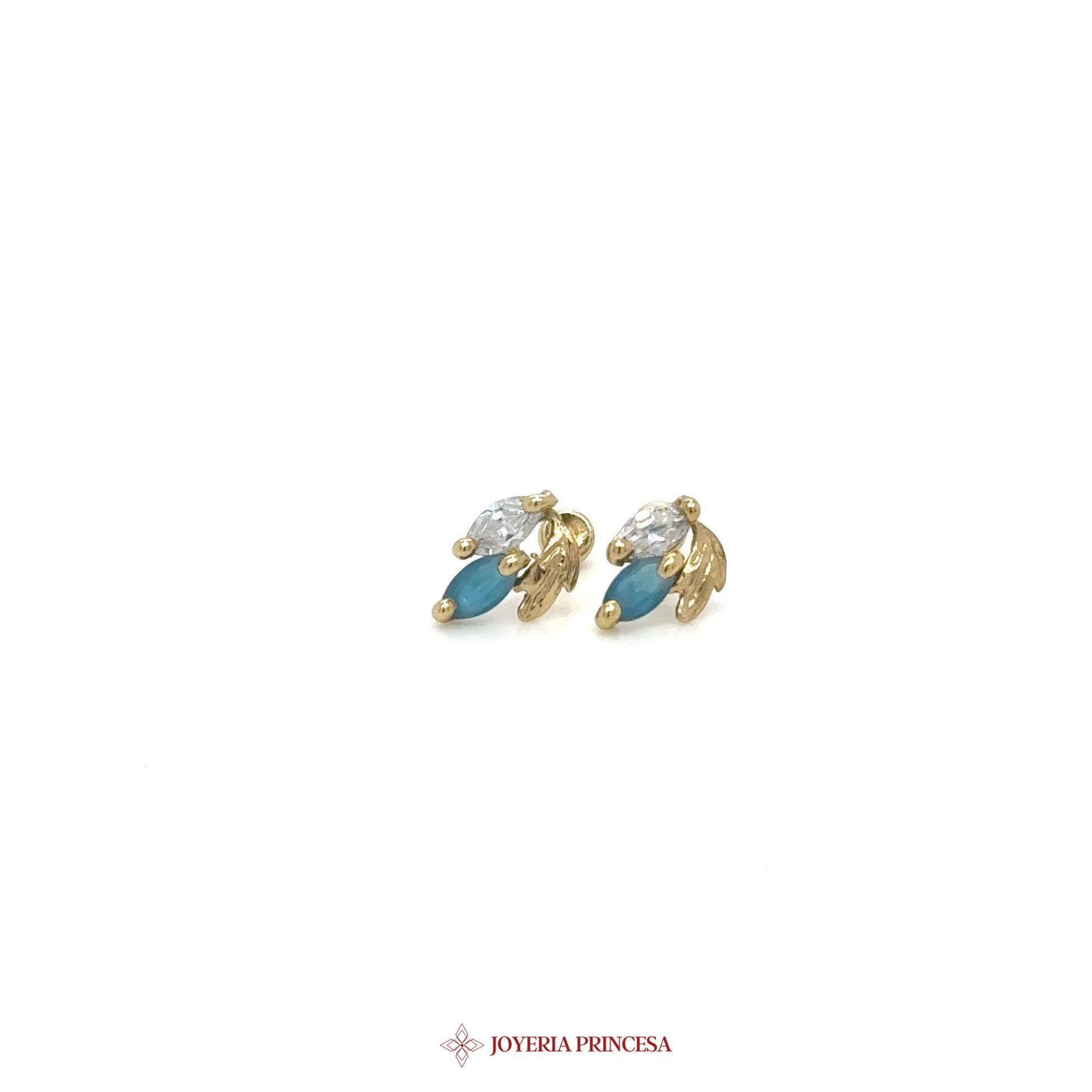 ES: Estos encantadores aretes de stud de oro de 10K presentan turquesa y piedras de CZ brillantes, perfectos para cualquier ocasión. • Elaborados en oro de 10K • Con turquesa vibrante y CZ • Ligeros y cómodos