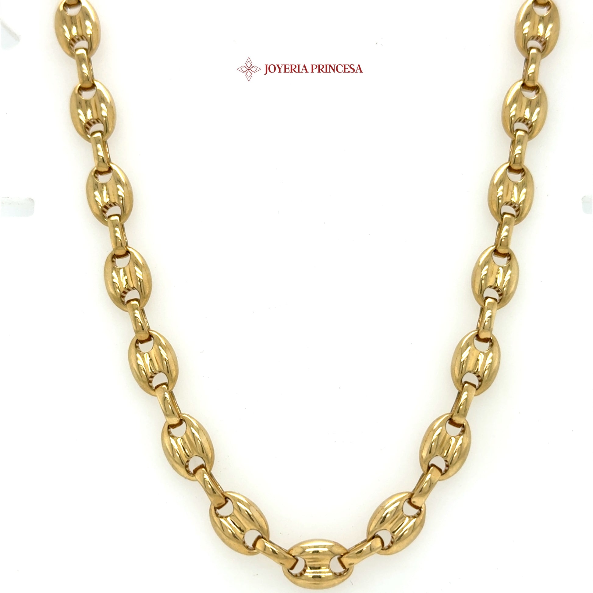 This exquisite 14K gold rolo chain exudes sophistication, featuring interlinked, polished oval links that create a harmonious blend of elegance and contemporary style.
