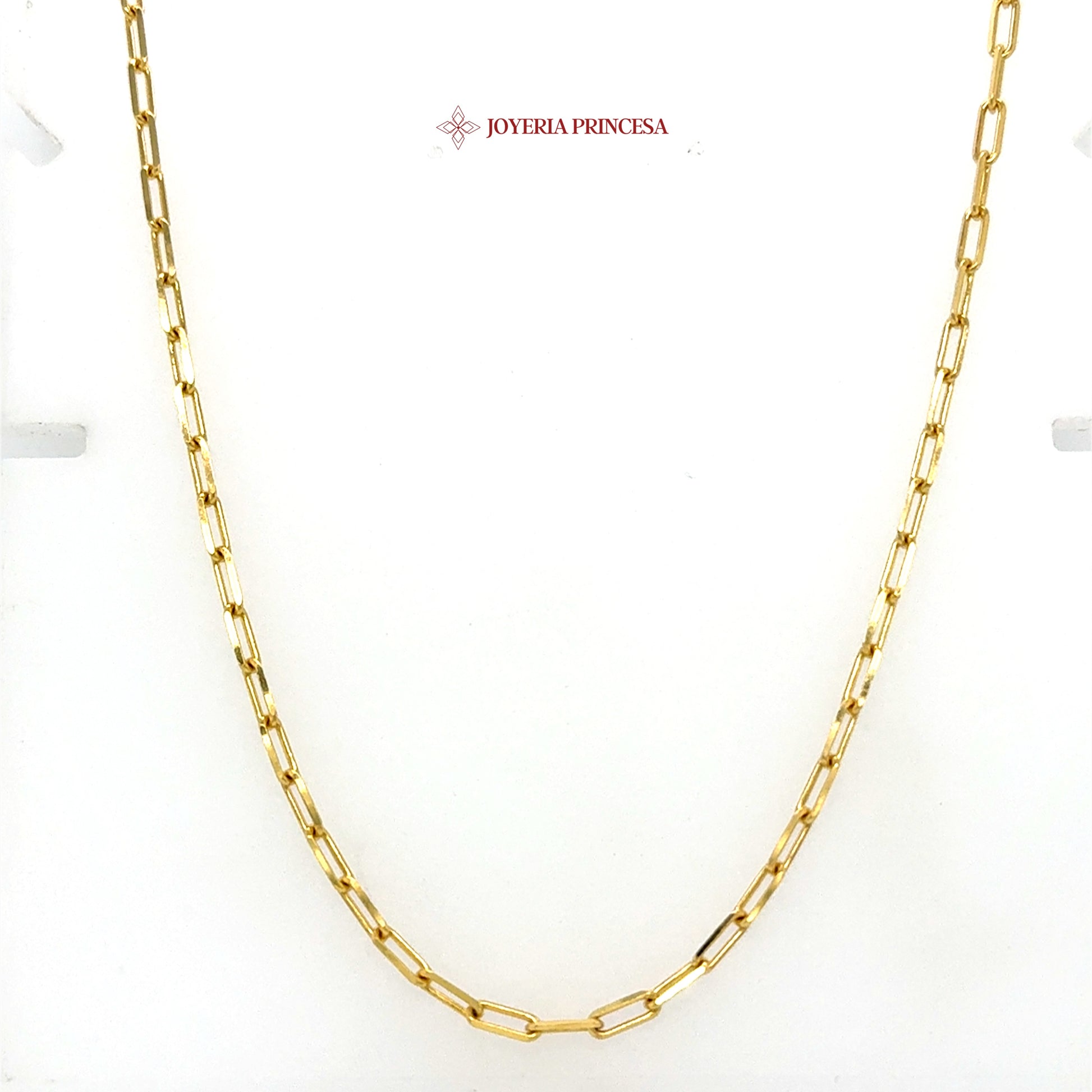 Elevate your elegance with this stunning 14K gold Paperclip chain, featuring elongated links that create a delicate yet striking visual appeal for any occasion.