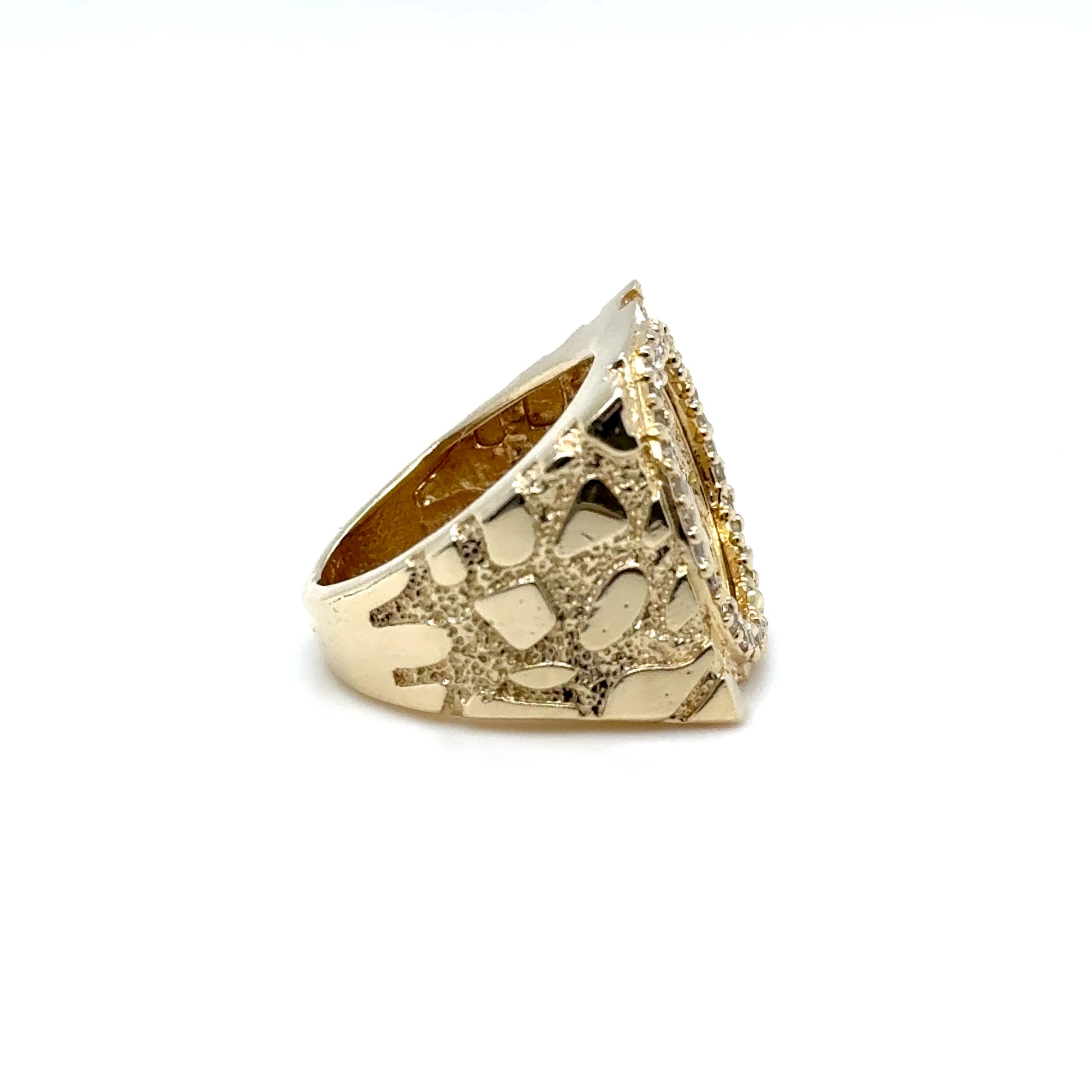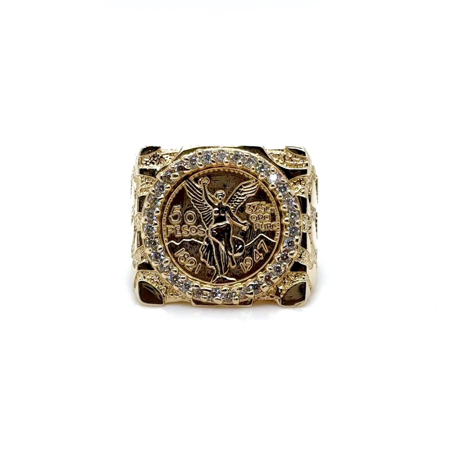 Experience elegance with the 14K Centenario Nugget Ring, showcasing a replica "Centenario" coin on a textured gold band. Key features: