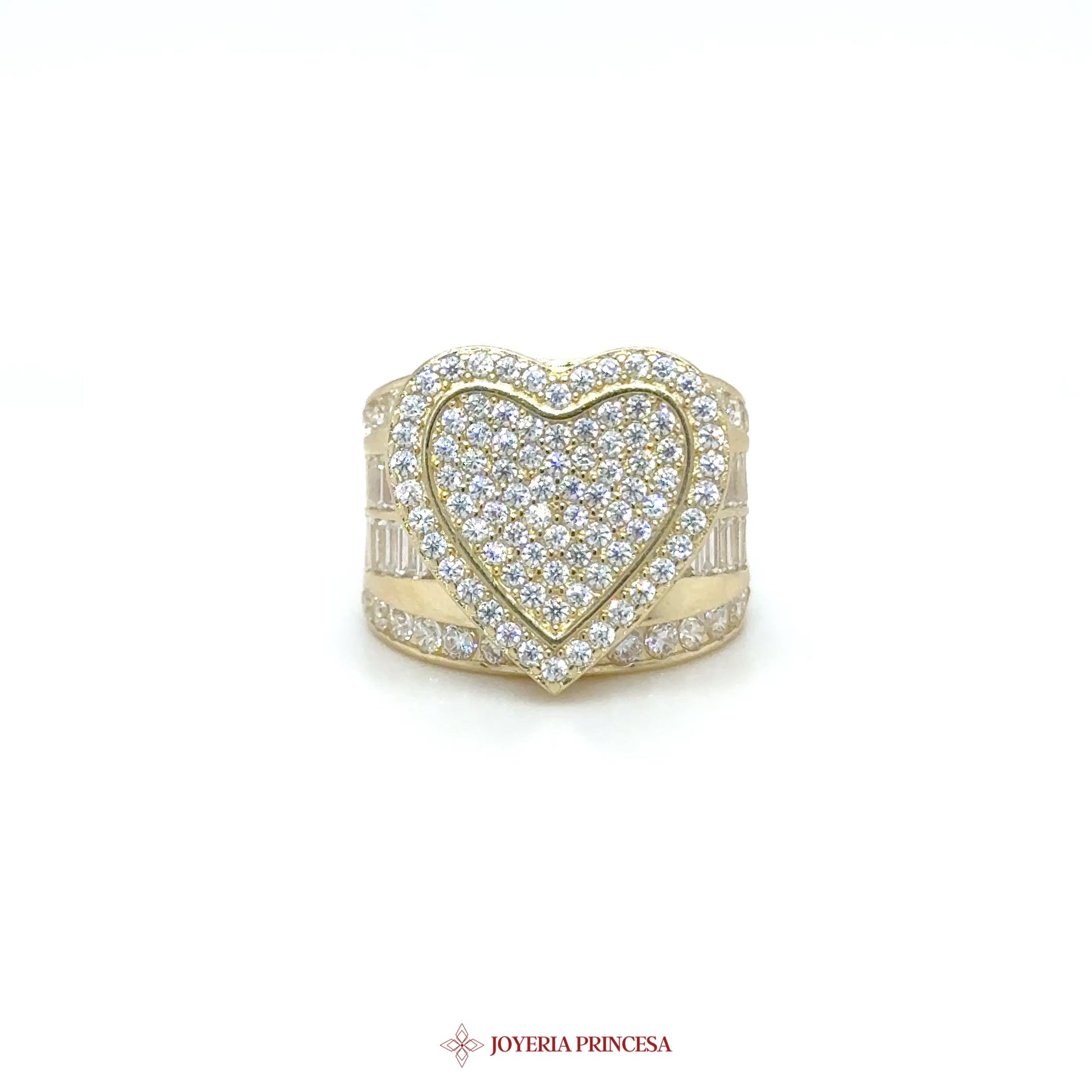 ES: Expresa tu amor con este impresionante anillo en forma de corazón con piedras CZ brillantes. • Elaborado en oro de 14K • Diseño elegante con piedras baguette y redondas • Perfecto para cualquier ocasión