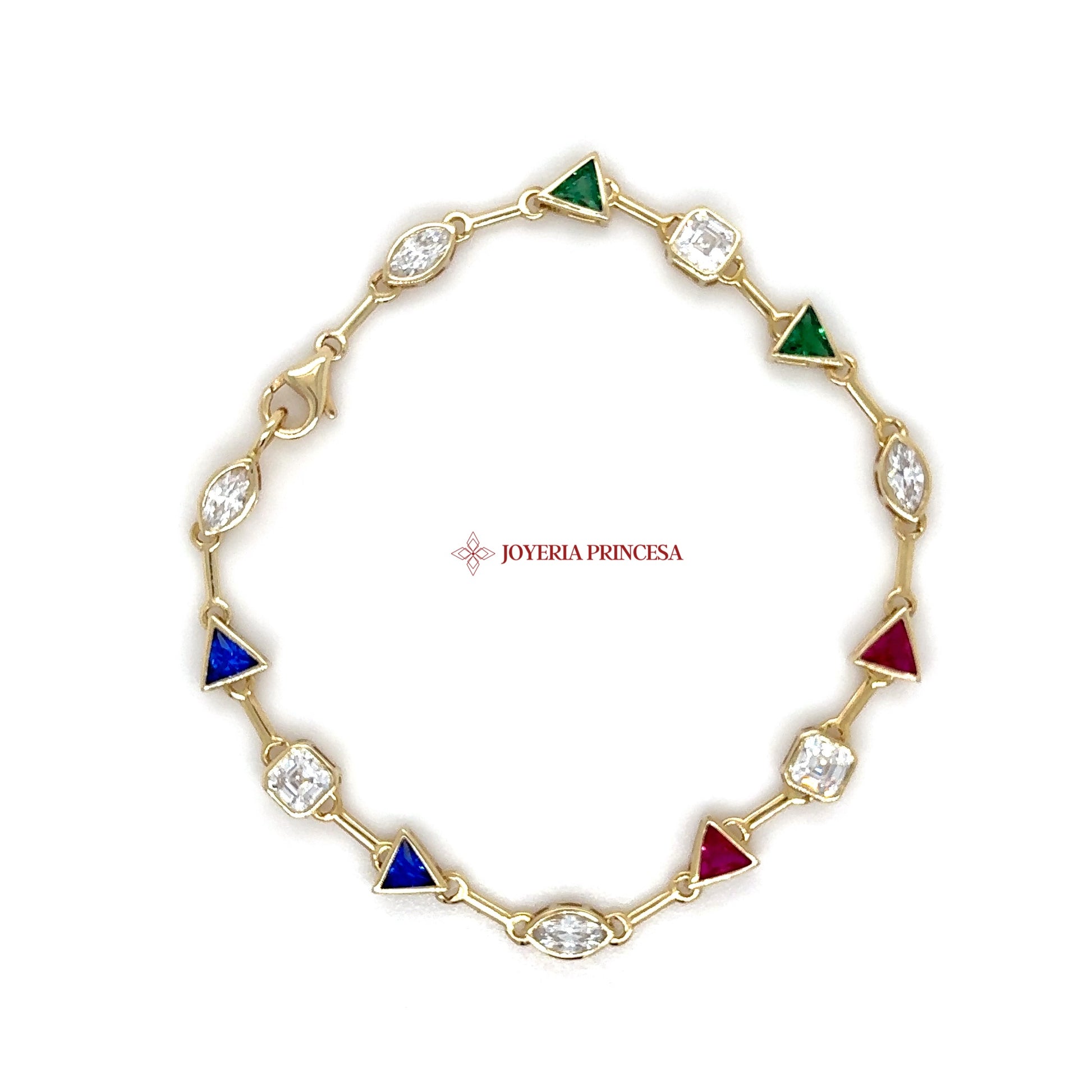 * Triangular and oval stones in blue, green, and red