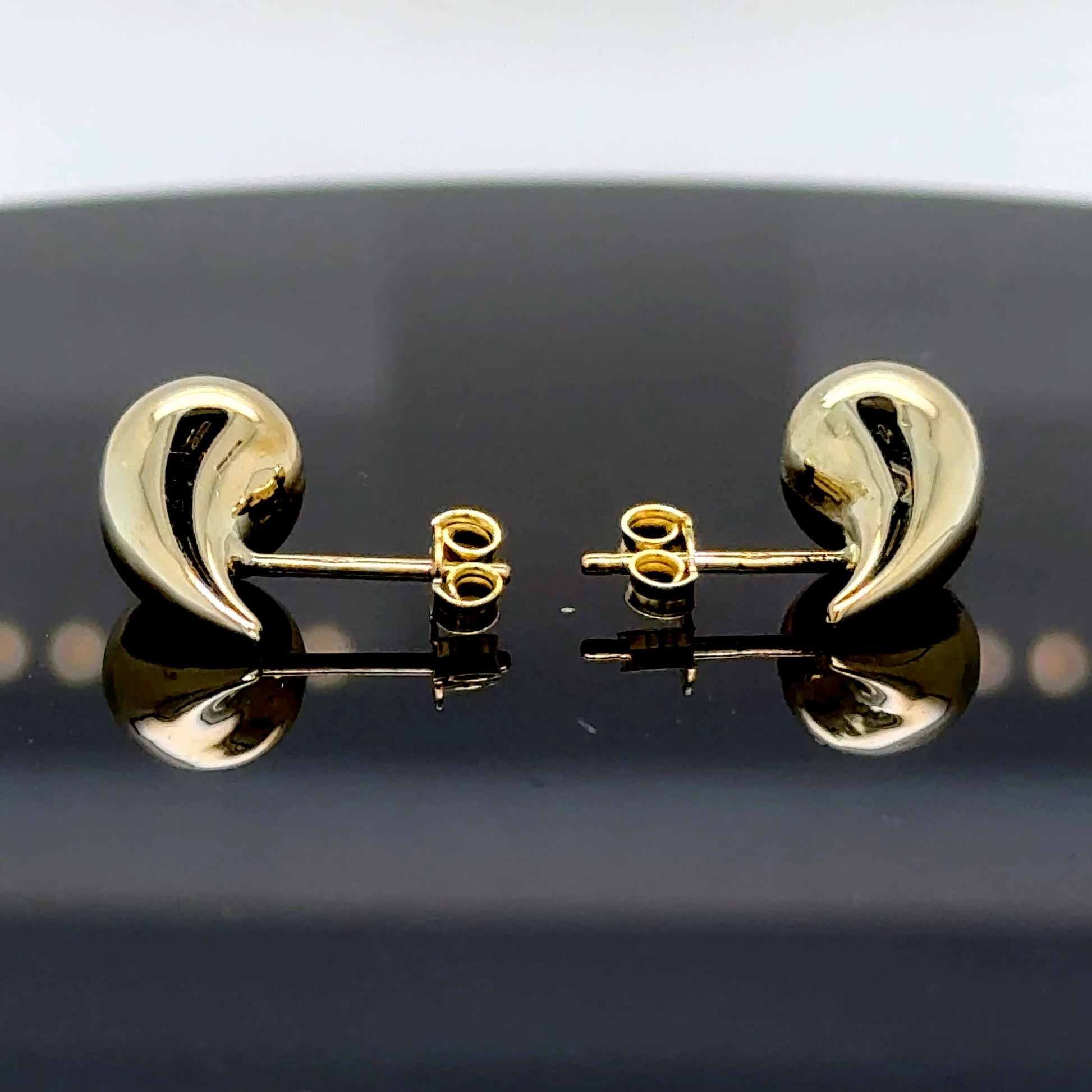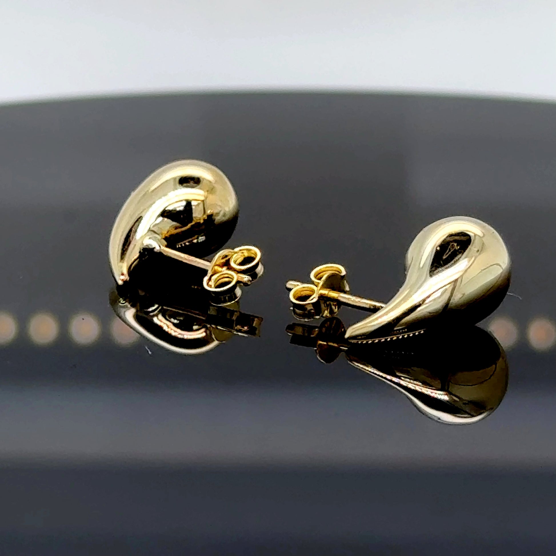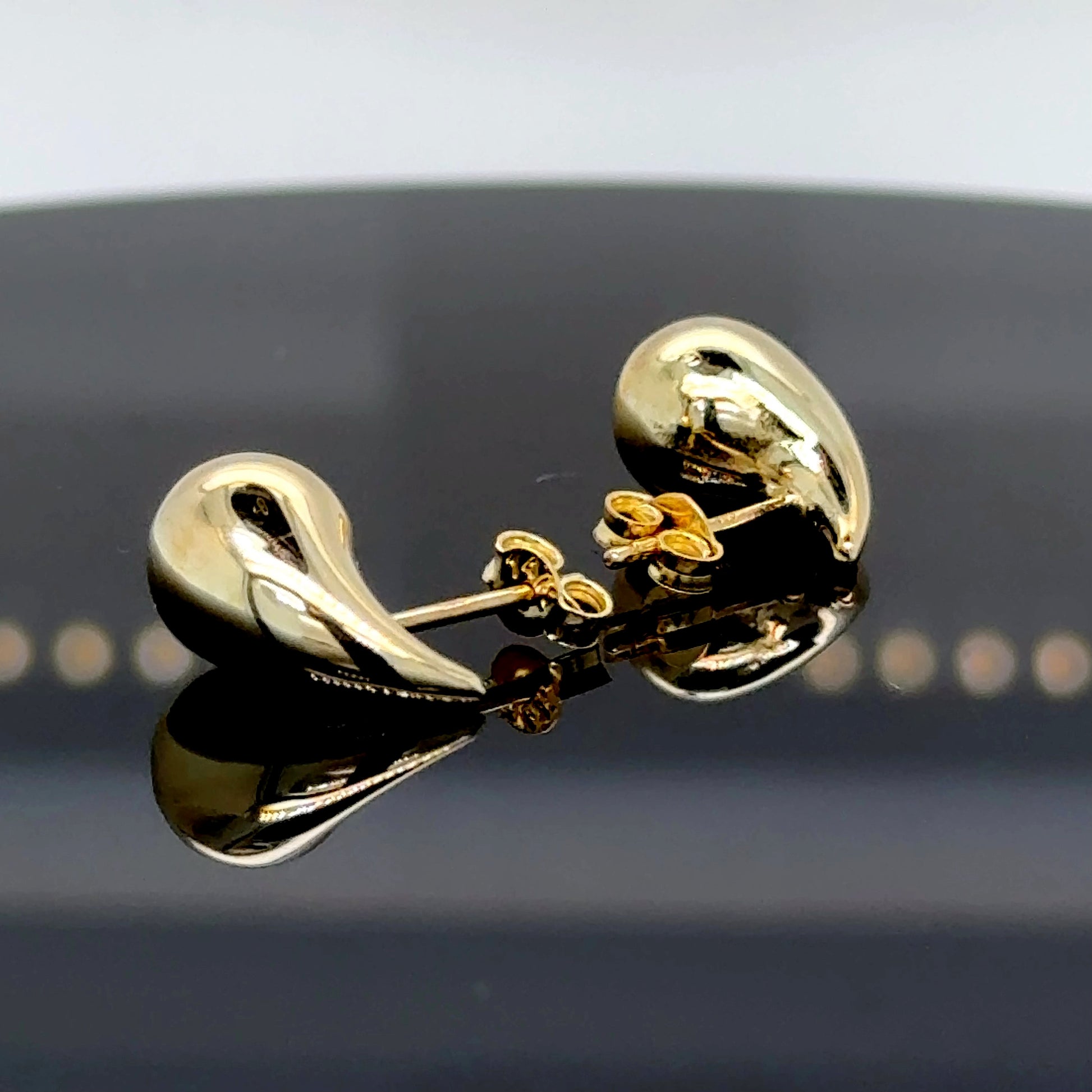Illuminate your style with 14K gold stud earrings featuring a sleek teardrop/bean design. Made from 14K gold with a polished finish, butterfly back closures, and a lightweight, versatile build for any occasion.