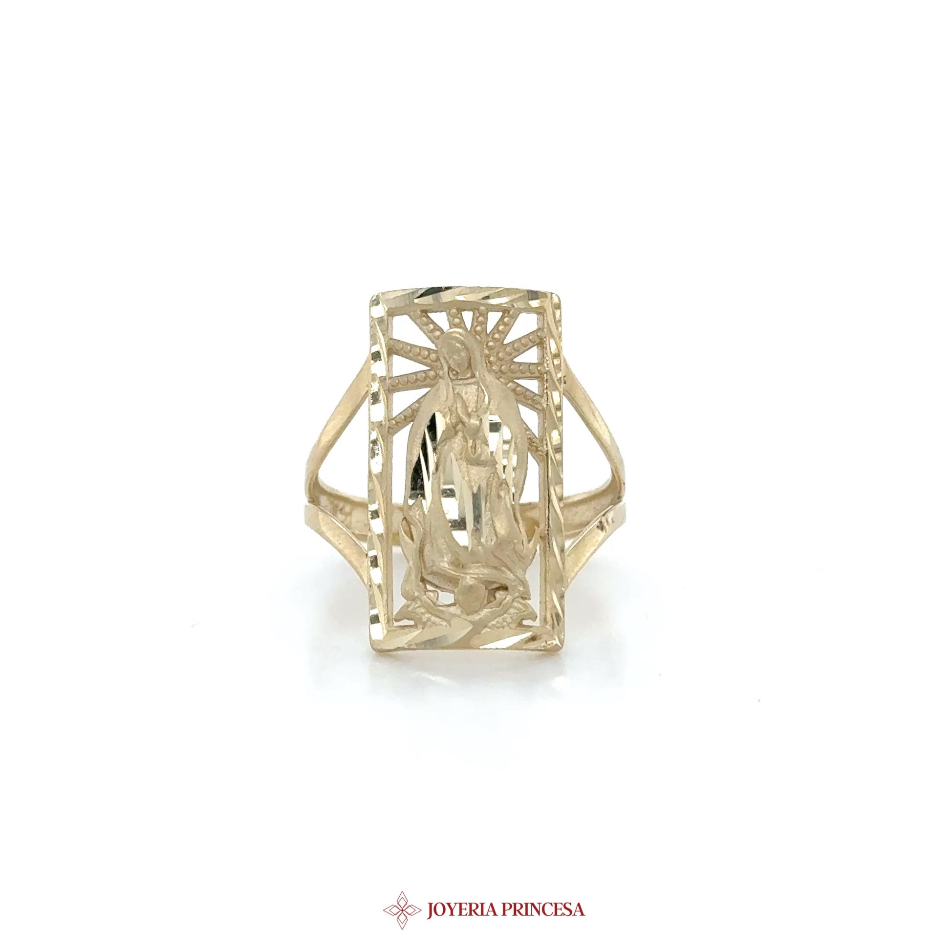 ES: Adorna tu mano con este elegante anillo de oro de 14K con un relieve detallado de la Virgen María. • Elaborado con cuidado • Diseño rectangular único • Perfecto para el uso diario