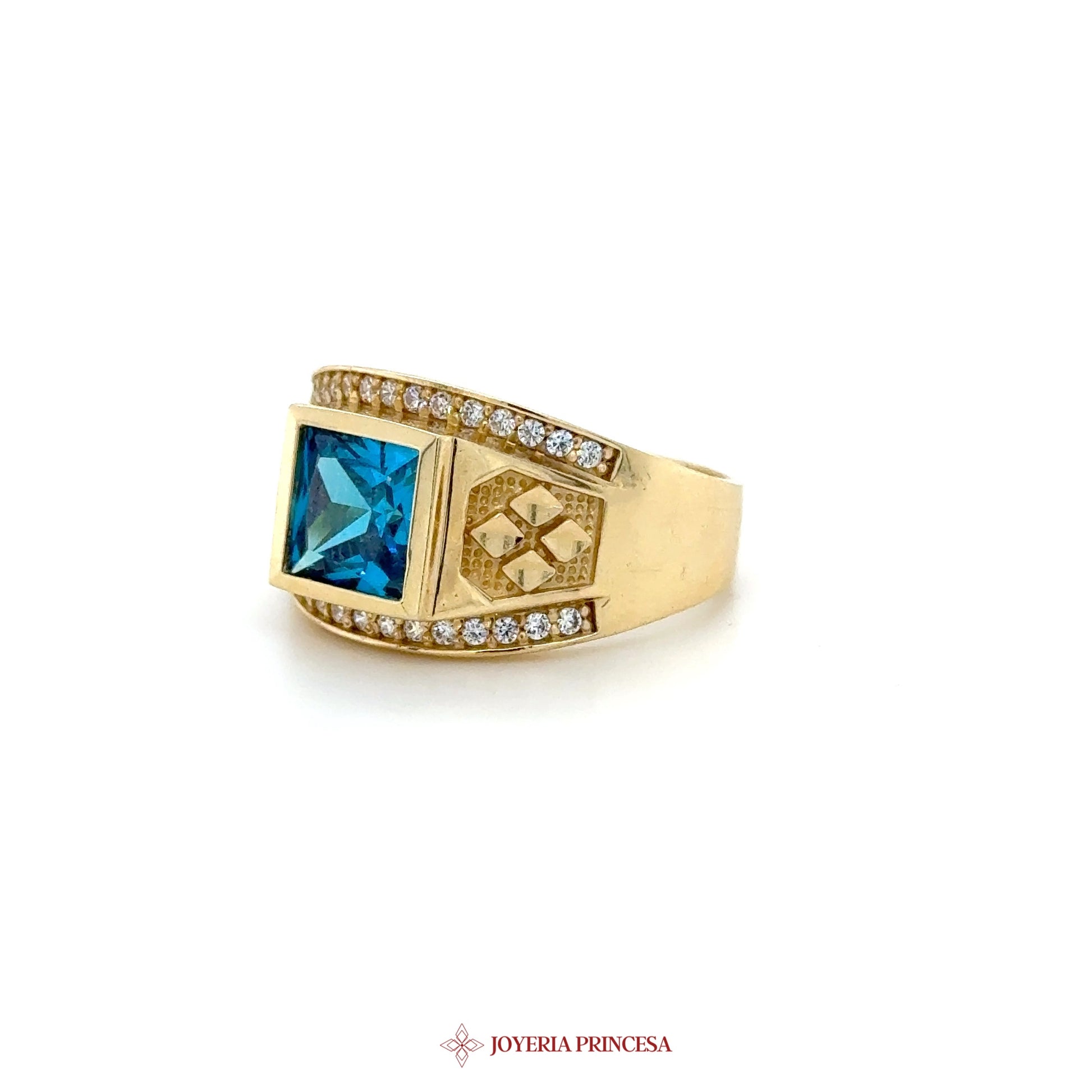 ES: Este impresionante anillo de oro de 14K cuenta con una vibrante piedra azul cuadrada rodeada de brillantes acentos de CZ. • Diseño elegante • Artesanía duradera • Perfecto para el uso diario