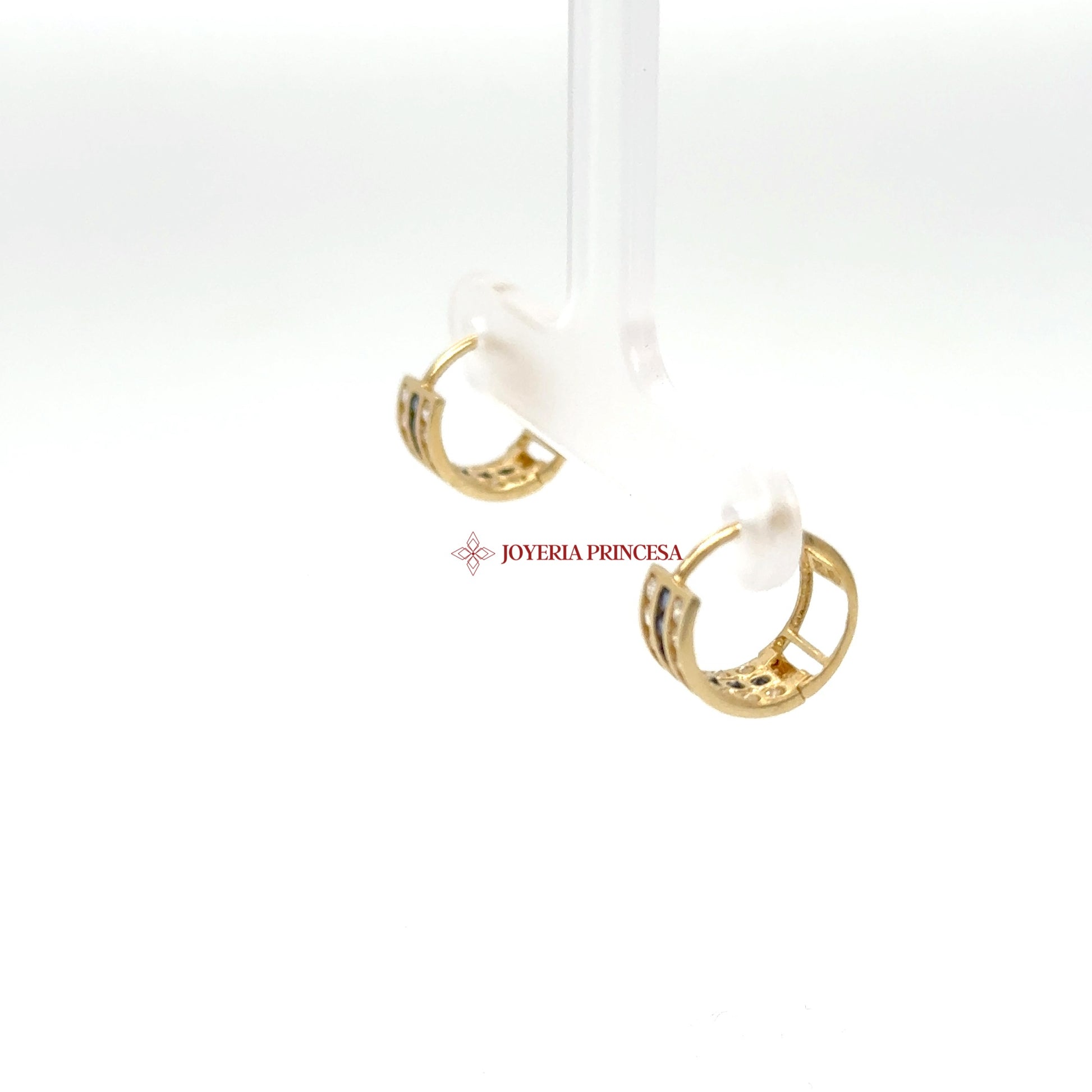 Bold and elegant, these 14K gold earrings feature triple rows of sparkling sapphire and diamond-like stones.