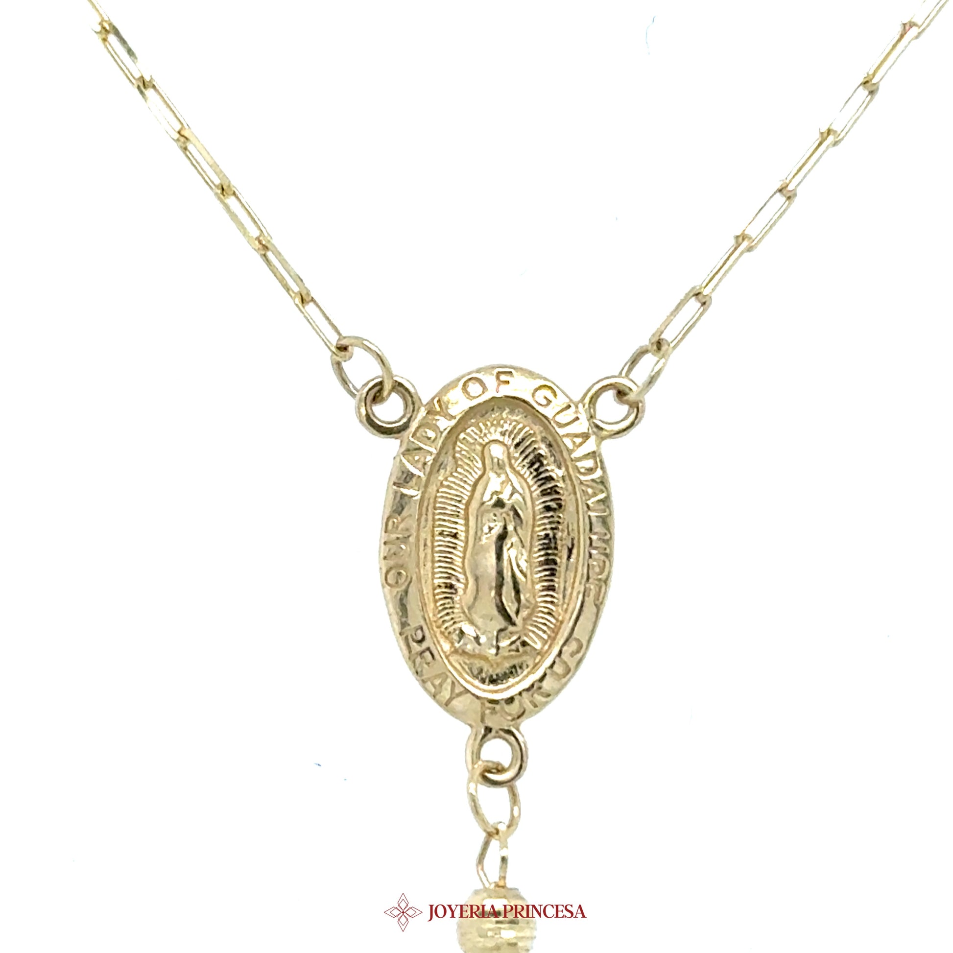 14K 22in 3mm Gold Virgen de Guadalupe Rosary Necklace (UN-2974)
