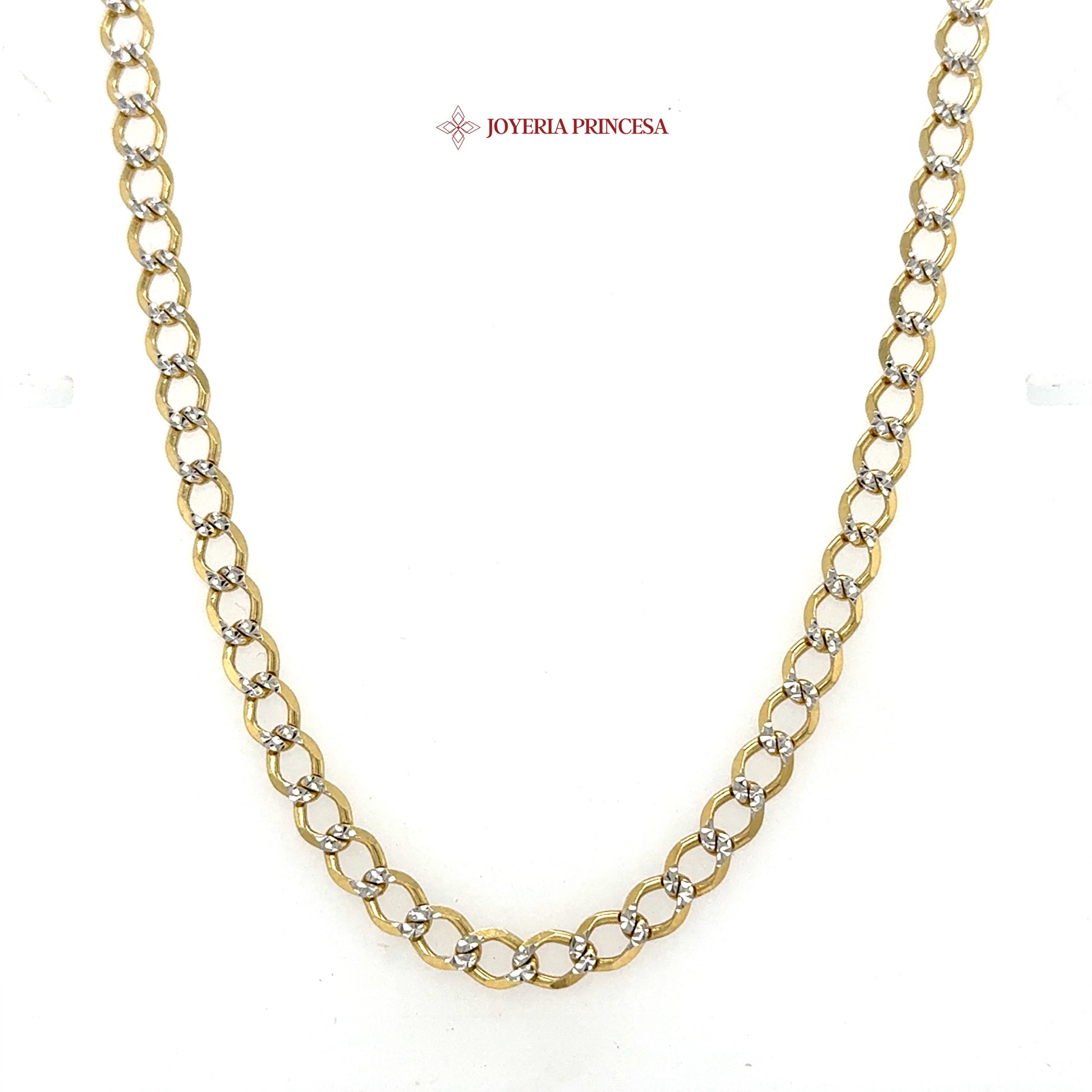 A sleek two-tone 14K curb chain with white diamond-cut accents for refined shine.