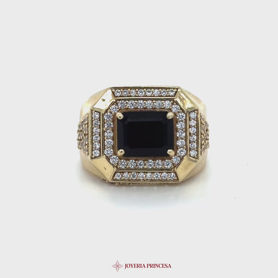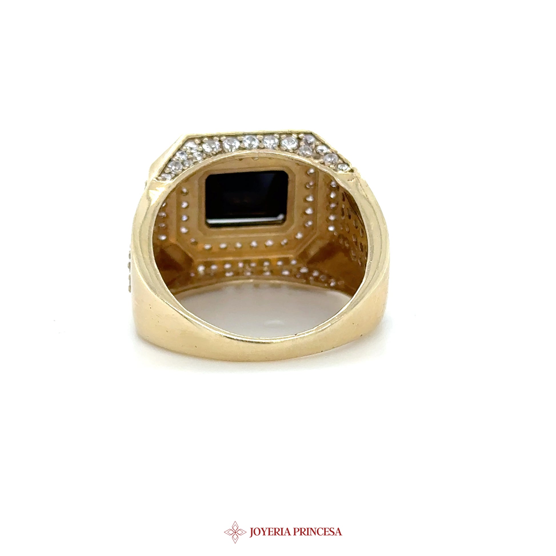 ES: Este impresionante anillo octagonal de oro amarillo de 14K presenta un diseño elegante con brillantes acentos de CZ. • Fabricado en oro de 14K de alta calidad • Elegante forma octagonal • Adornos de circonita cúbica brillante