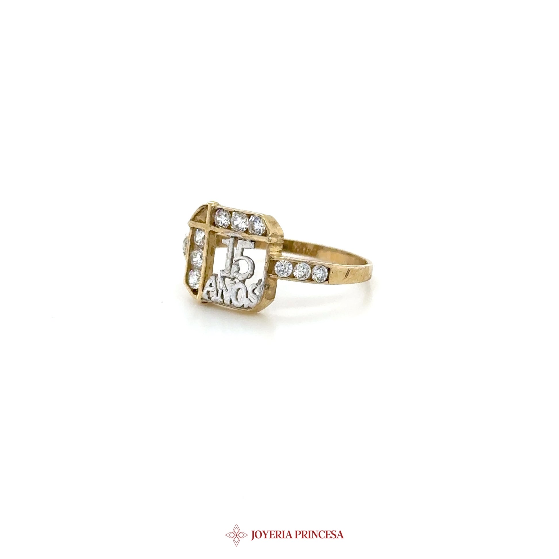 EN: Celebrate a special milestone with this elegant 15 Años ring. • Crafted in 10K gold • Adorned with sparkling CZ stones • Perfect for commemorating a quinceañera.