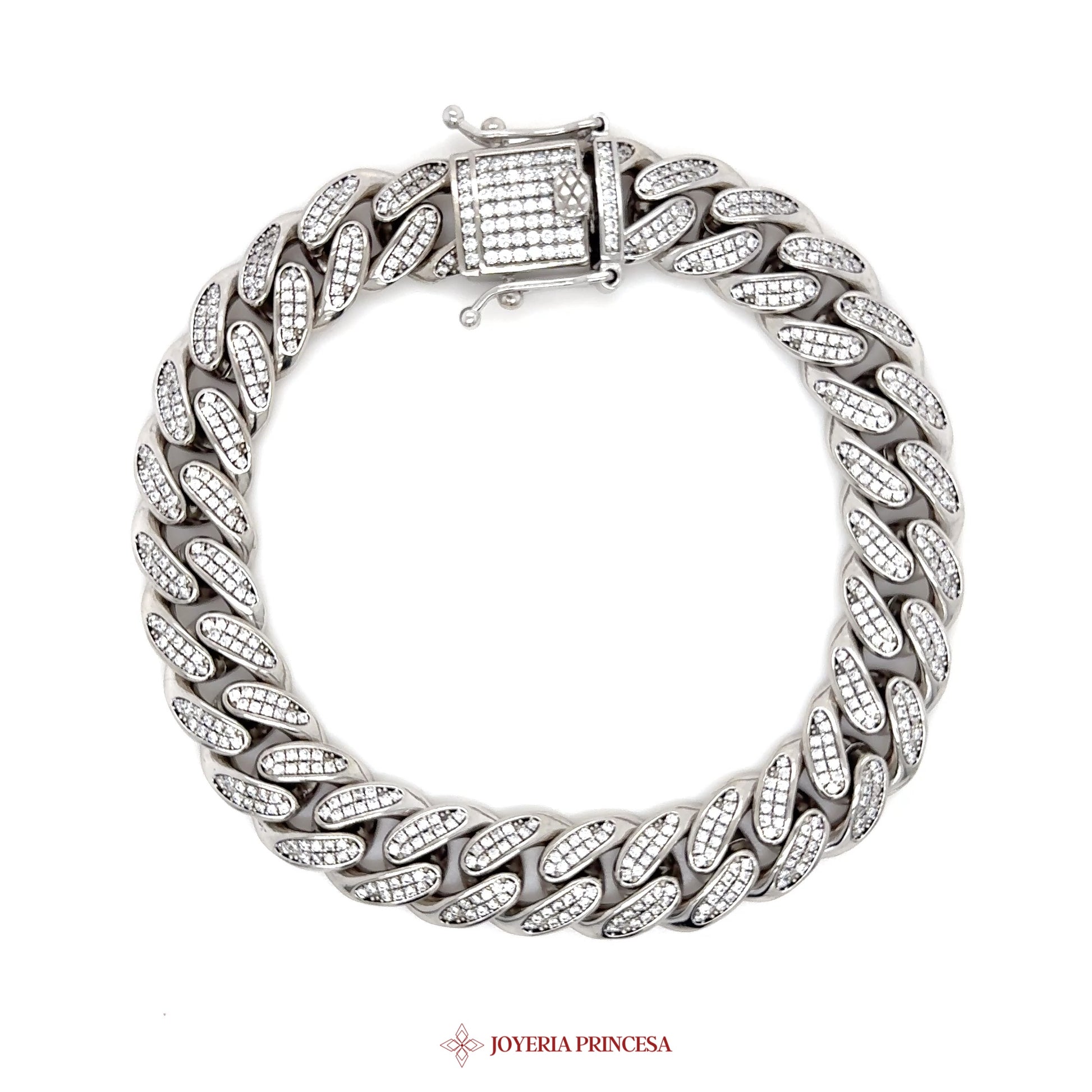 EN: This stunning silver bracelet features a curb link design adorned with simulated stones for a dazzling look. • Elegant curb link style • Sparkling simulated stones • Secure clasp for comfortable wear