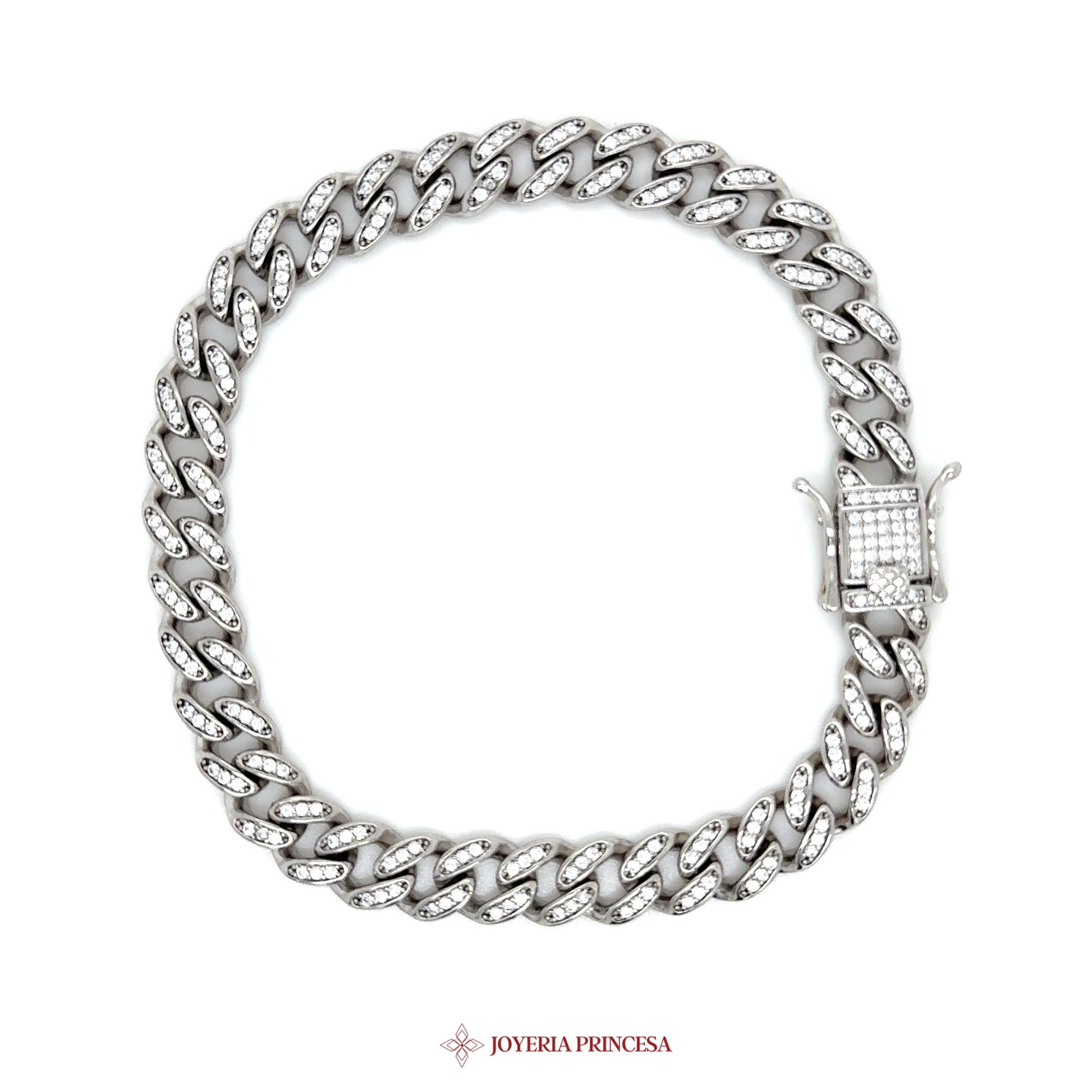 ES: Esta impresionante pulsera de plata cuenta con un diseño de eslabones audaces adornada con piedras simuladas para un toque de elegancia. • Artesanía duradera • Brillo llamativo • Perfecta para cualquier ocasión.
