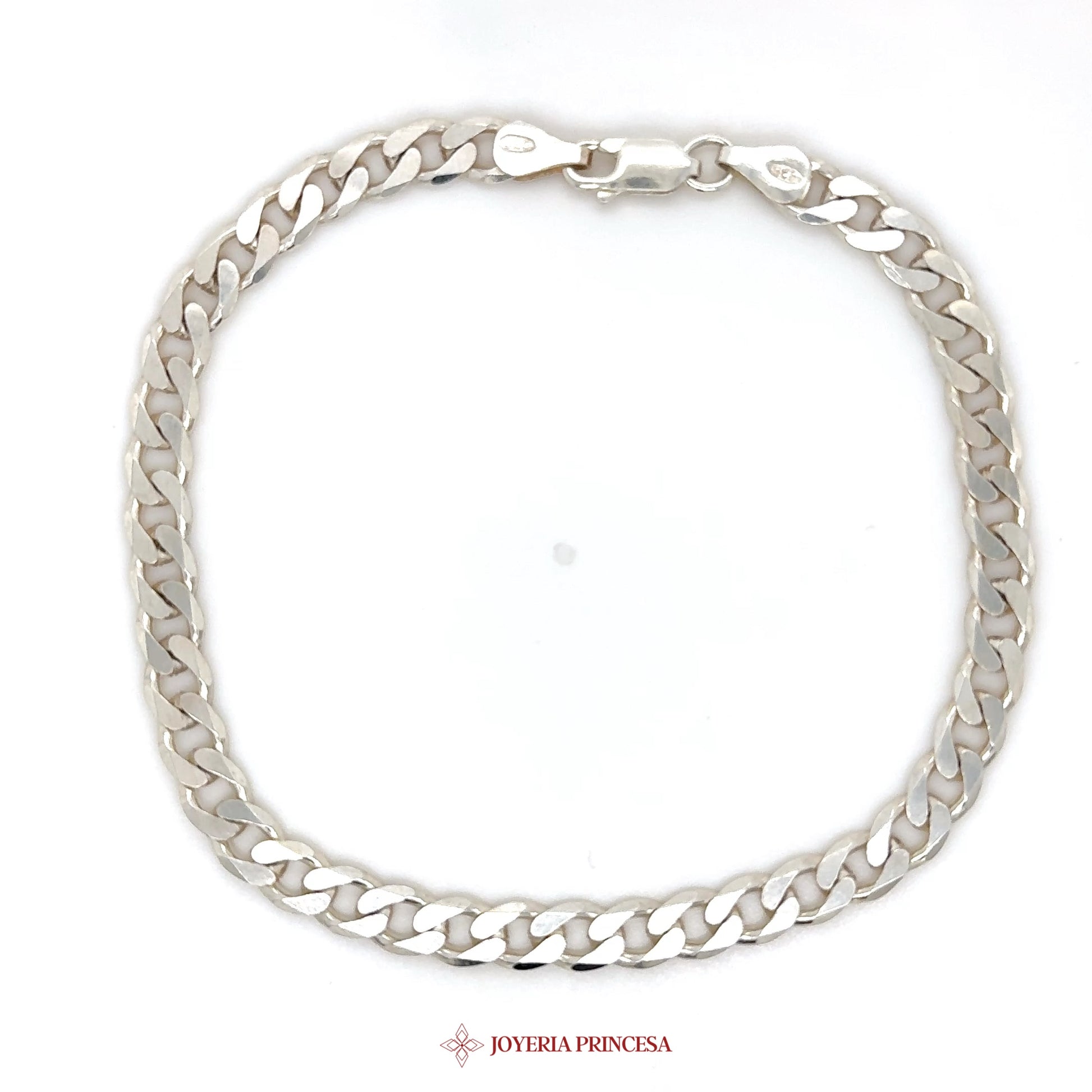 ES: Esta clásica pulsera de plata presenta un elegante diseño de cadena curb, perfecta para el uso diario. • Construcción de plata duradera • Estilo de cadena curb atemporal • Versátil para combinar con otras joyas