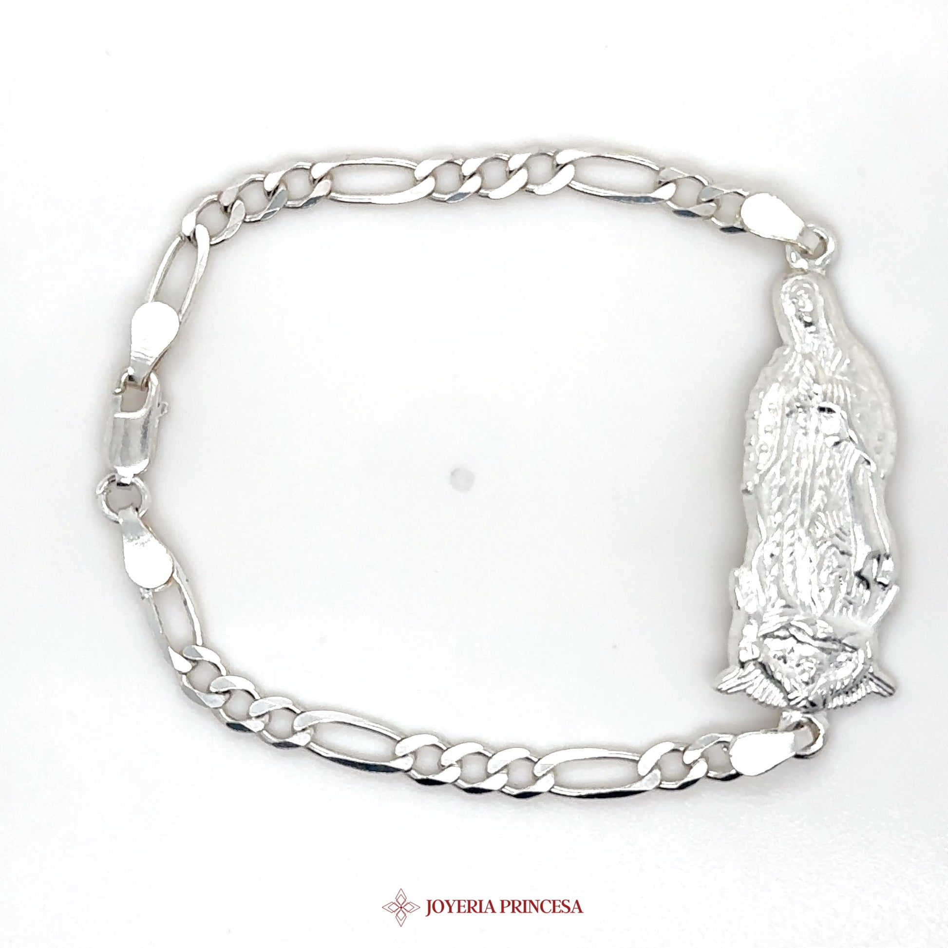 EN: Celebrate faith with this stunning silver bracelet featuring the Virgen de Guadalupe. • Intricate detailing • Durable link design • Perfect for everyday wear