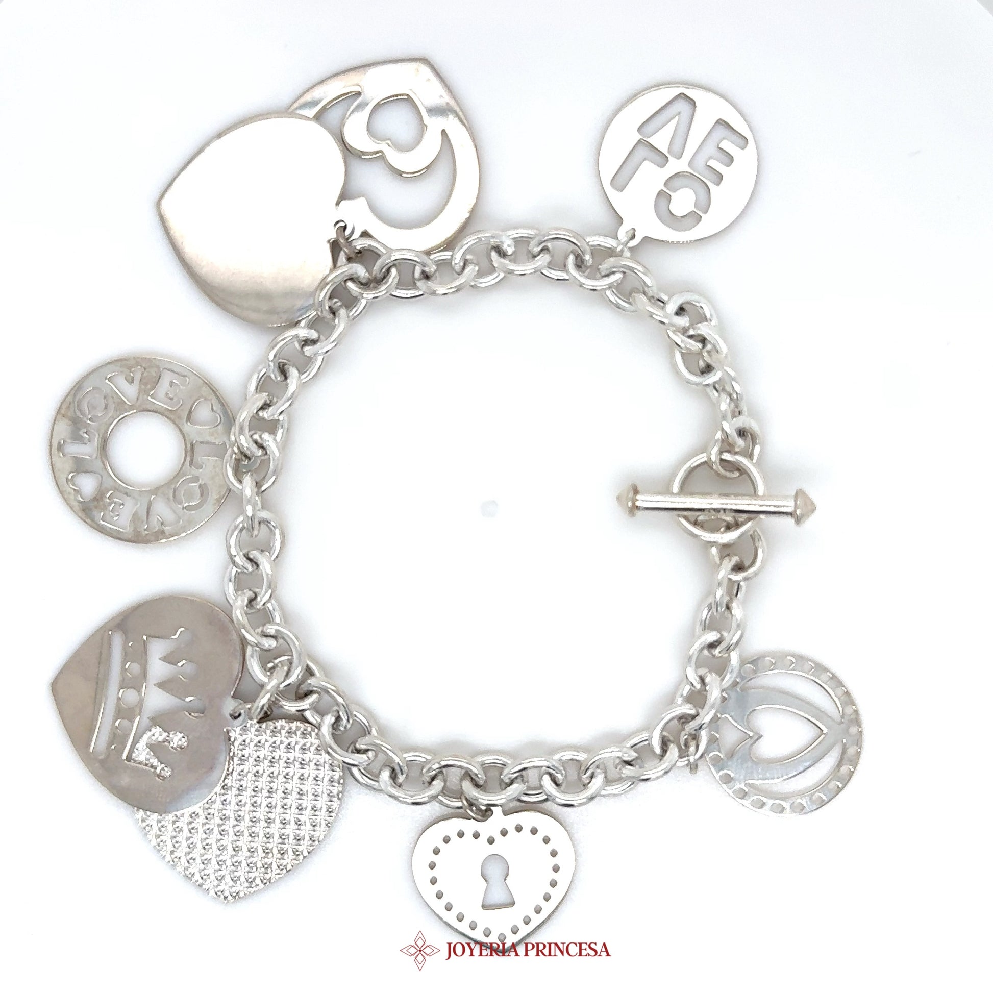 Silver Charm Bracelet with Heart & Peace Motifs